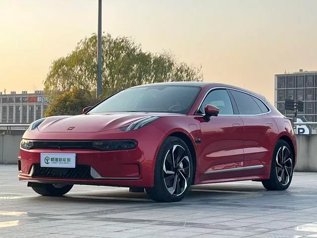 ZEEKR 001, модель 2022 года, версия YOU с двумя двигателями и увеличенным запасом хода — автомобиль с пробегом, доступный для экспорта из Китая с цветом кузова красный. Текущая экспортная цена: 25 602 $. Пробег: 14 000 км.