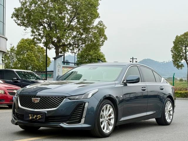 Cadillac CT5 2022 28T Luxury Model is a used vehicle available for export from China, featuring a dark gray exterior. Current export price: $22,722. Mileage: 61,000 km.