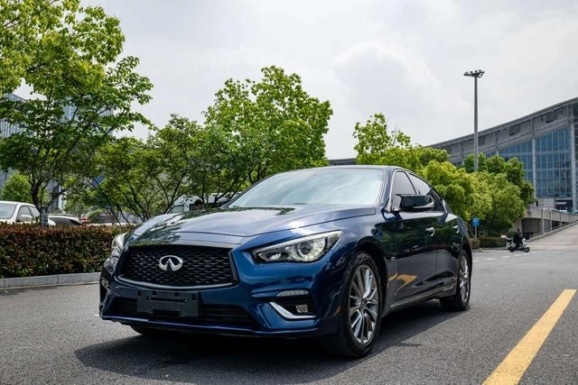 Infiniti Q50L 2018 2.0T Comfort Edition country VI is a used vehicle available for export from China, featuring a blue exterior. Current export price: $10,937. Mileage: 105,000 km.