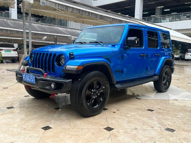 Jeep Wrangler 2022 2.0T Highland Jungle Green Limited Edition is a used vehicle available for export from China, featuring a blue exterior. Current export price: $50,300. Mileage: 17,000 km.